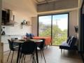 Apartamento de 46 mts2 de construccion con ventaneria de piso a techo que permiten una iluminación natural y agradable, completamente amueblado y equipado.