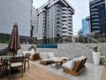Edificio de apartamento de uso mixco, en el primer nivel cuenta con restaurantes y una tienda que hacen de tu dia a dia algo mas práctico, amenidades como Social Corner, Churrasquera, Karaoke, Salón de eventos, Gimnasio, área para piscina con bar, yoga deck, sun deck.