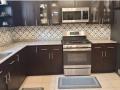 Sala, comedor y cocina con top de marmol.
