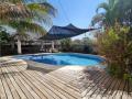 Piscina con deck y área para duchas.